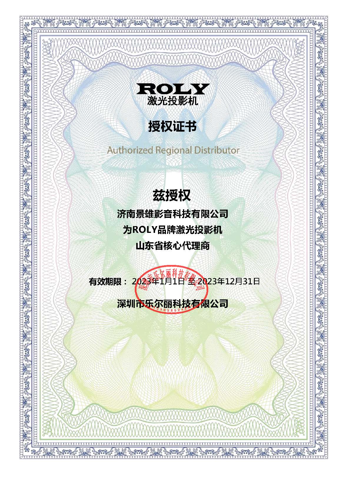 樂麗授權證書
